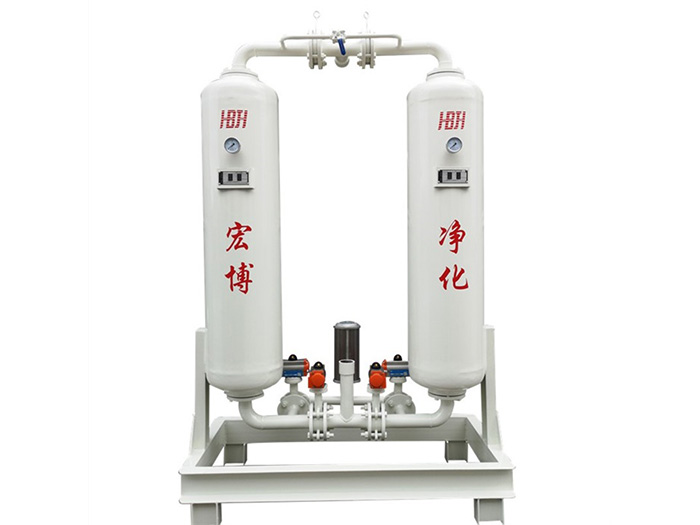 無熱吸附式干燥機(jī)是利用變壓吸附的原理,使干燥機(jī)在管網(wǎng)壓力下吸附,然后在切換到大氣壓下脫附,并從干燥機(jī)出口引回約12-14%的干燥成品氣對干燥劑進(jìn)一步凈化再生。雙塔交替進(jìn)行以上過程,向用氣點(diǎn)提供干燥的壓縮空氣。